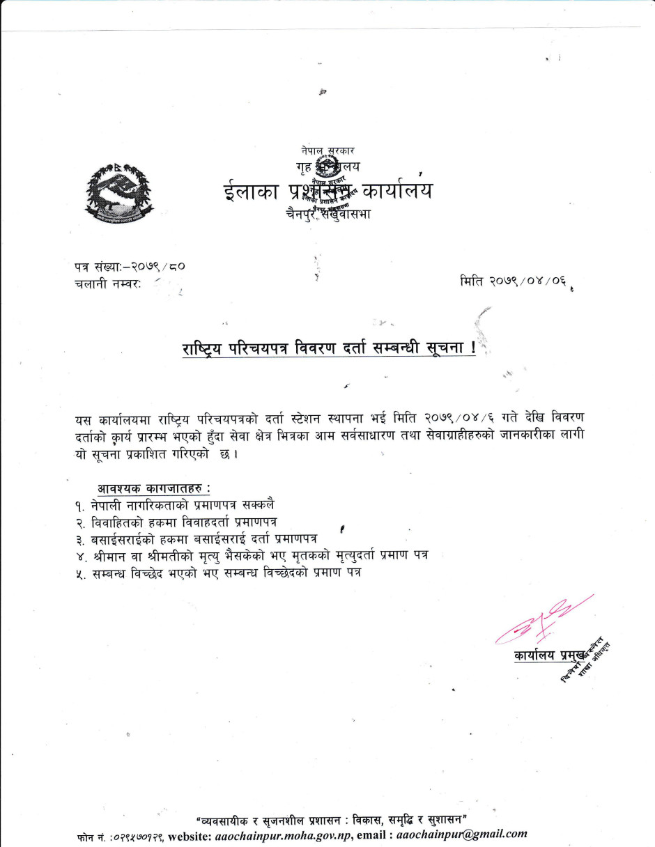 राष्ट्रिय परिचयपत्र Station स्थापना भएको सम्बन्धमा